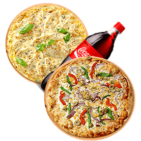 2 Pizzas Méga au choix + 1 Boisson 1.5L au choix.